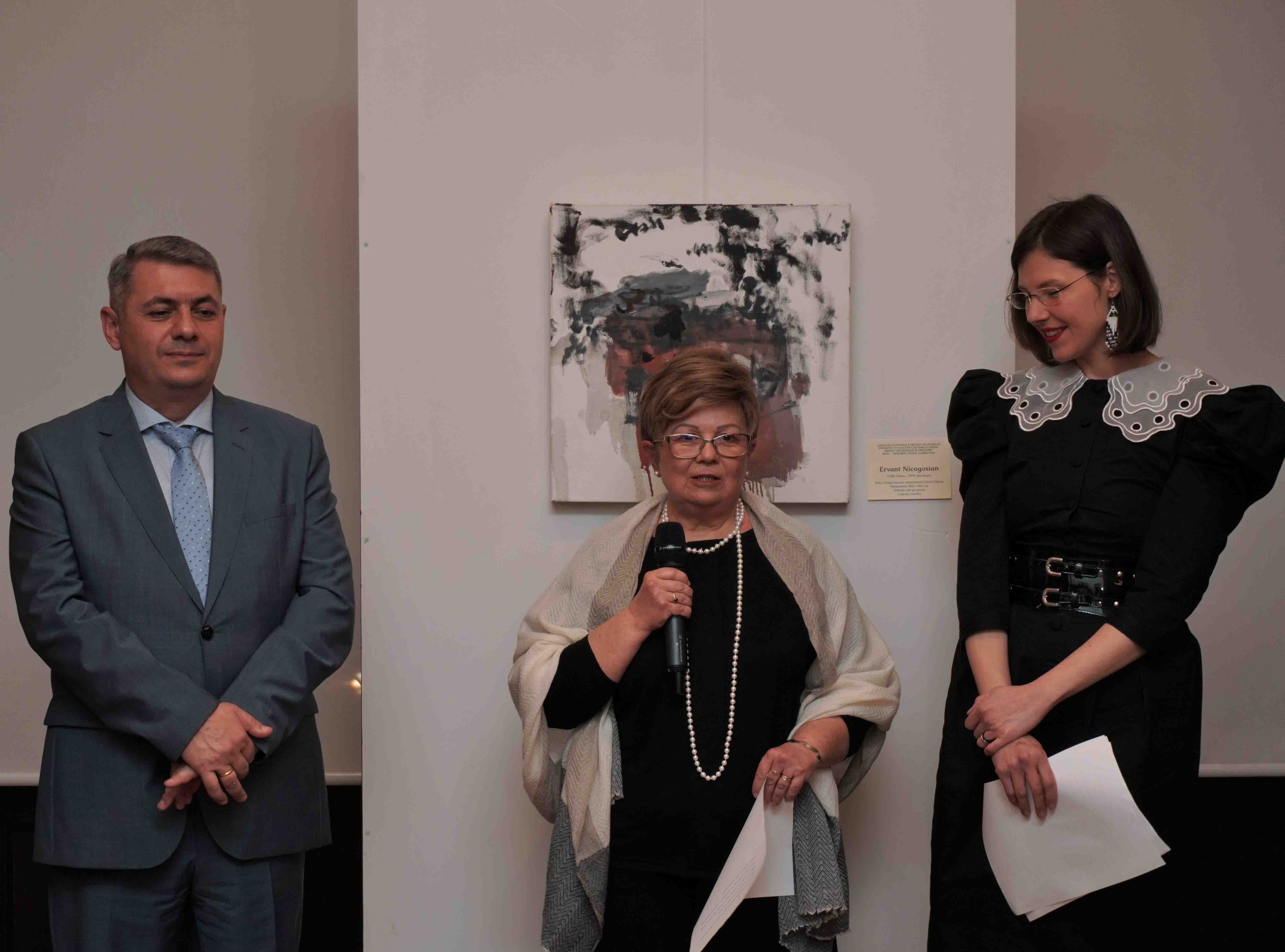 D-l S. Srapionyan, adjunct al ministrului Diasporei, a spus: „Acesta este un bun prilej pentru ca iubitorii de artă din Armenia să cunoască creaţia pictorului Ervant Nicogosian. Donaţia doamnei Madeleine trebuie să devină un exemplu pentru ceilalţi conaţionali ai noştri care trăiesc în Diaspora, pentru ca exemplare valoroase ale artei armene să fie strămutate în Patrie”. Adjunctul ministrului Diasporei a dat totodată o înaltă apreciere activităţii de păstrare a armenităţii în România de către doamna Madeleine Karacaşian, care este autoarea ciclului de volume „Cu şi despre armeni”, care reprezintă ele însele o colecţie de articole cu privire la problemele armeneşti.